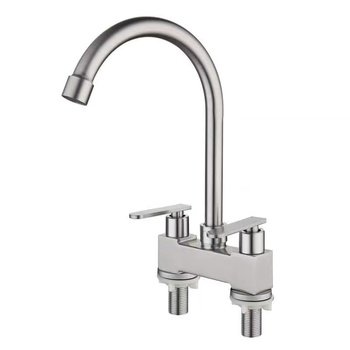 Keran wastafel dua lubang baja tahan karat, keran wastafel panas dingin dengan 4 "pusat keran wastafel kamar mandi 304 Modern