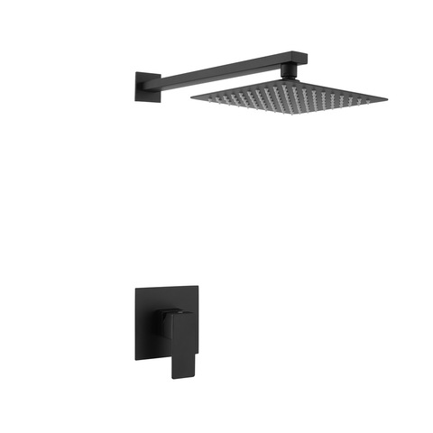 Fabriek Koop Enkel Handvat Matte Black Vierkante Regendouche Verborgen Wandmontage Badkamer Douche Set